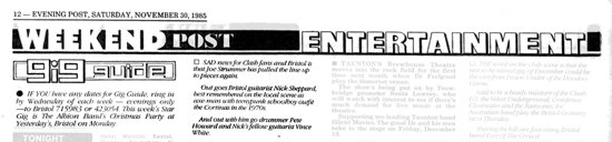 Eventually Alan Jones from Melody Maker, who's now the editor but at the time it was his first reporting job, I'd known him from Newport, he was a student at the college. I got him to come to the Pig Dog, hoping that we'd get a bit of press, and he wrote four lines at the bottom of their gossip column. Me and Big John took this four lines down to the Elgin and we showed it to the landlord, and he read it and said, right lads, Monday then. I'll give you ten pounds. That's when we got onto the circuit. That's when The Pistols first came across me. Sid Vicious - I don't think John did, but anybody who was anybody eventually turned up down there on Thursdays. Although we didn't realise it, we were at least playing very fast music.