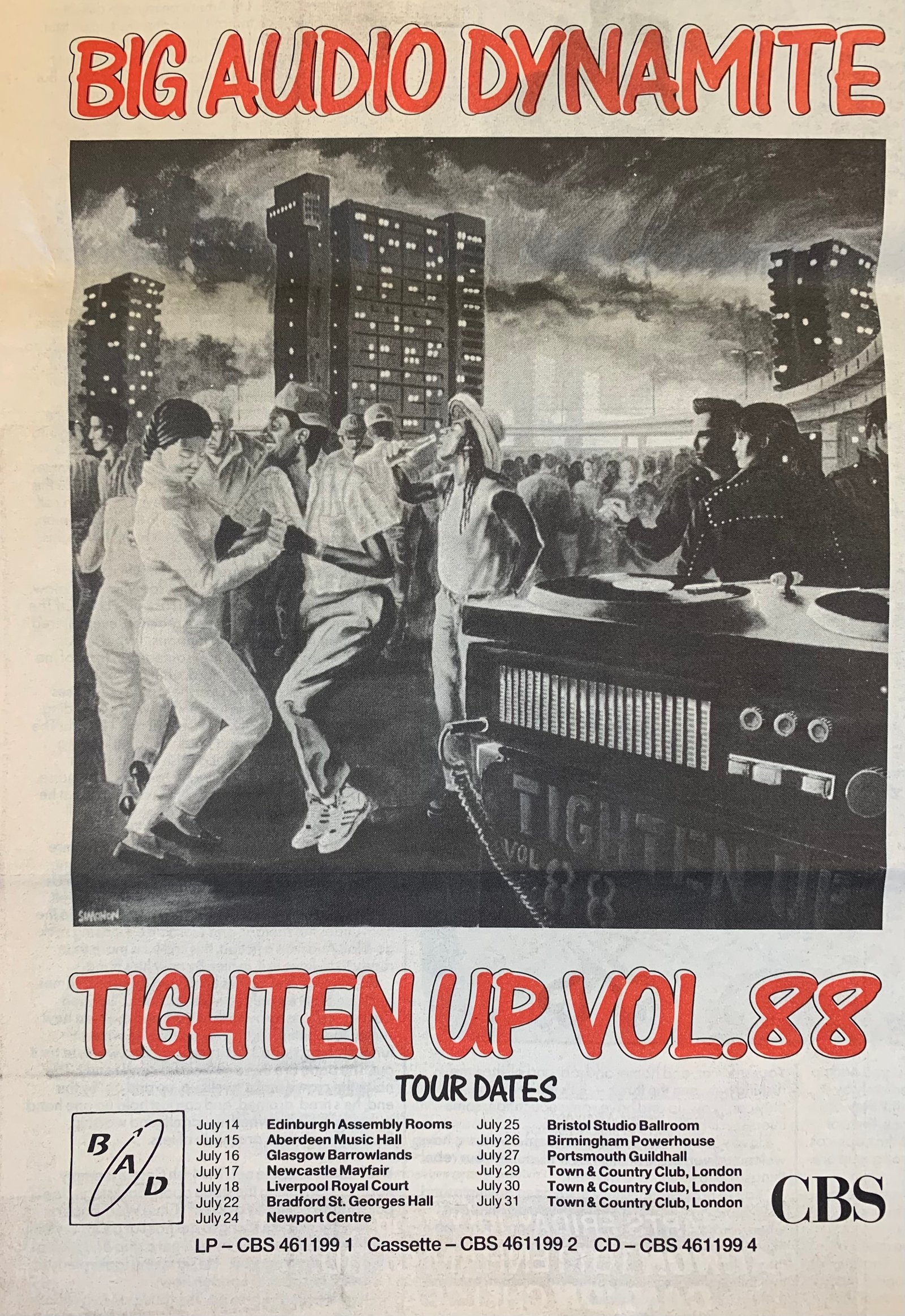 Meanwhile, Big Audio Dynamite (BAD), led by Strummer's former Clash bandmate Mick Jones, released Tighten Up Vol. 88.