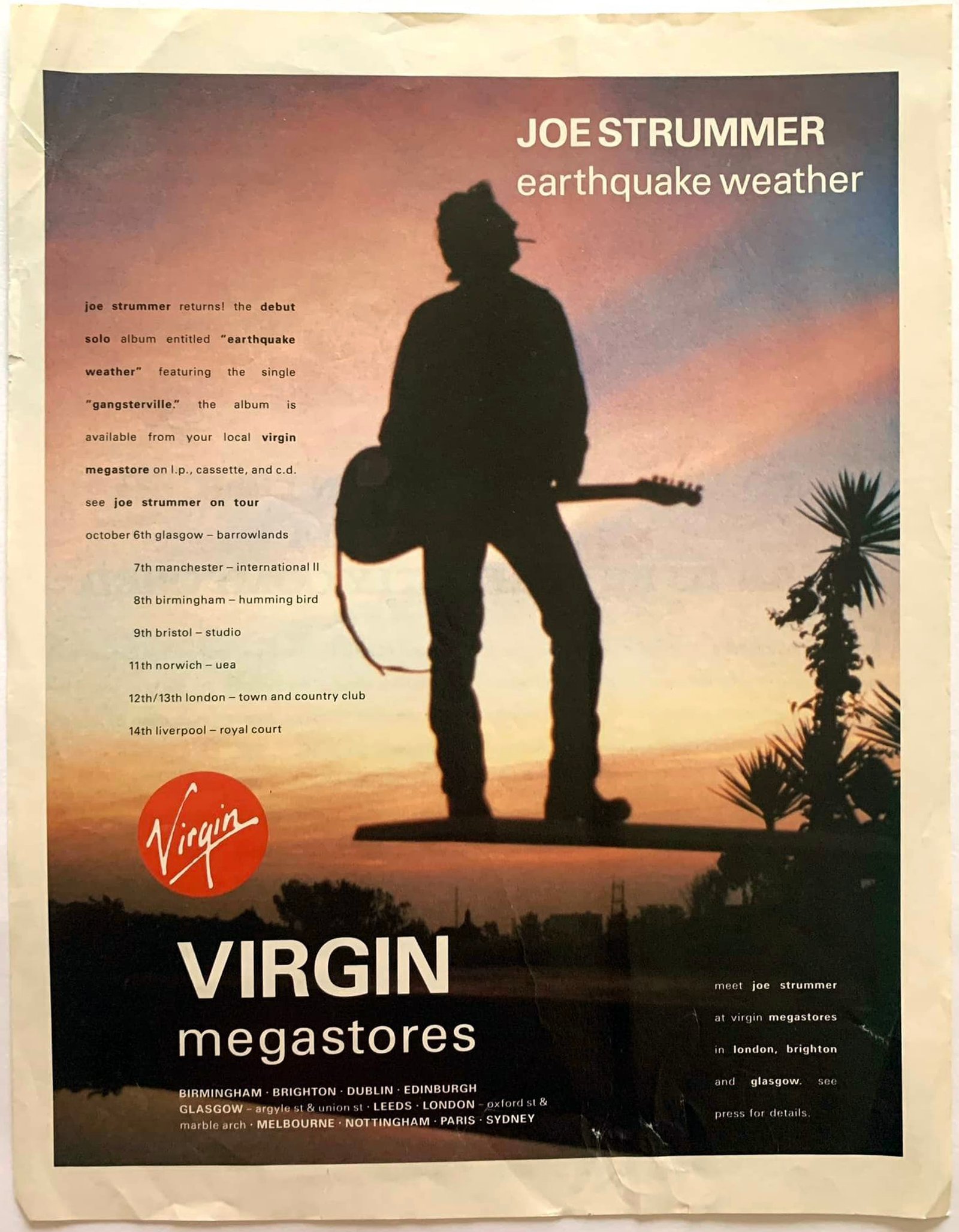 Beyond the tour, Strummer also contributed to film soundtracks like Permanent Record and promoted the single Trash City, signaling his return to high-profile, politically-charged performance (Scotland on Sunday).
