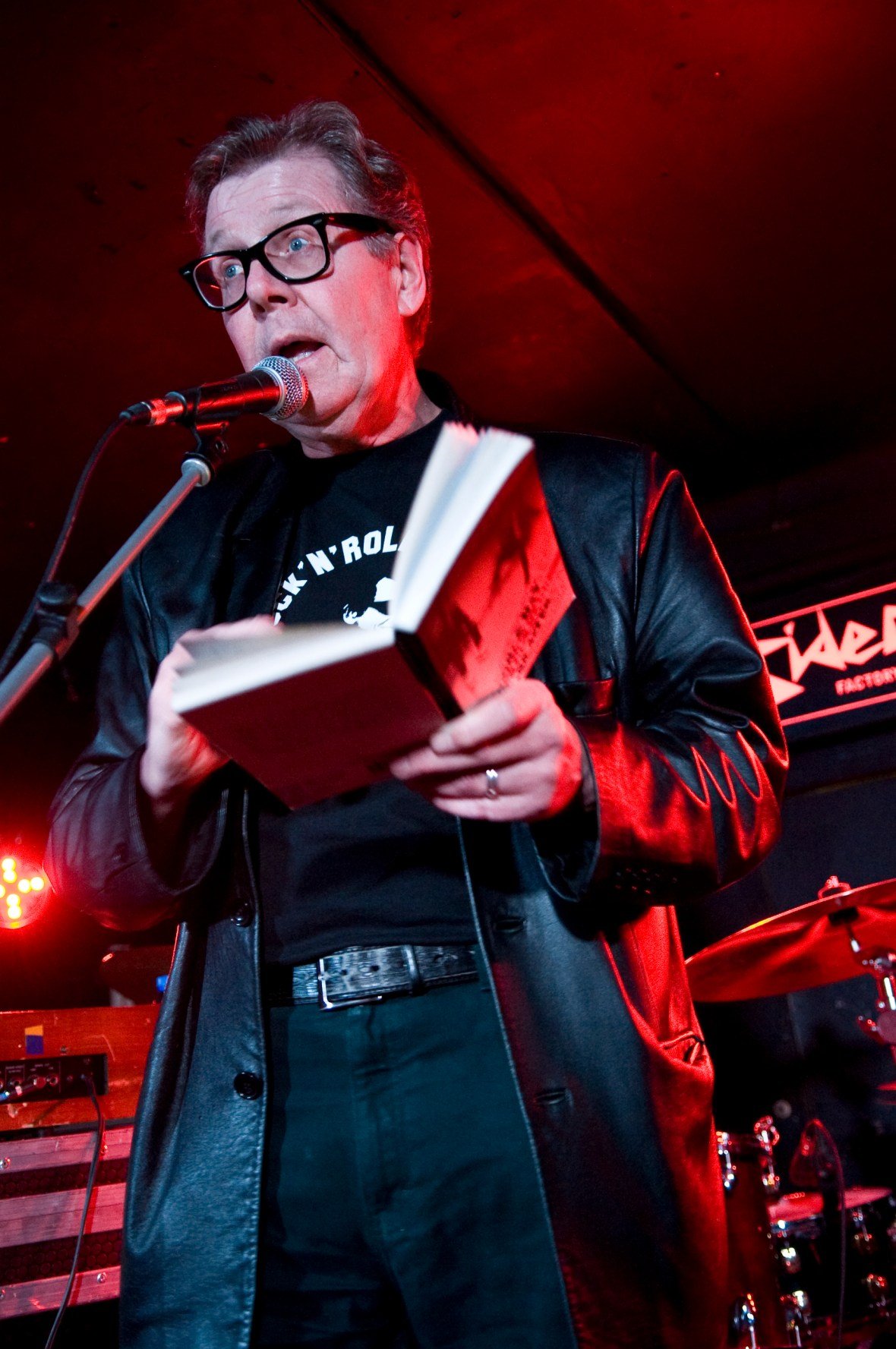 But John wasn’t just a road man: as often as not he’d be up on stage himself, sparring with and interviewing authors promoting their books – Don Letts, Jah Wobble, Paul Torday, John Cooper Clarke himself – sometimes reading from his own work: frequently A Riot of our Own (written with Garry Barker), his inside-track on days with the band, often billed as the definitive book on The Clash, a title which hasn’t been out of print since 1997.