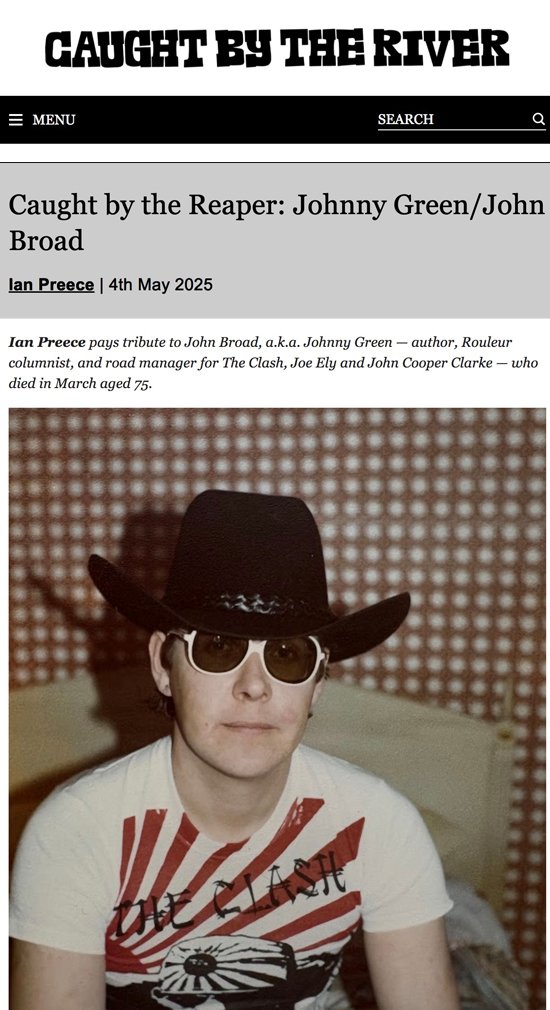 Ian Preece pays tribute to John Broad, a.k.a. Johnny Green — author, Rouleur columnist, and road manager for The Clash, Joe Ely and John Cooper Clarke — who died in March aged 75.