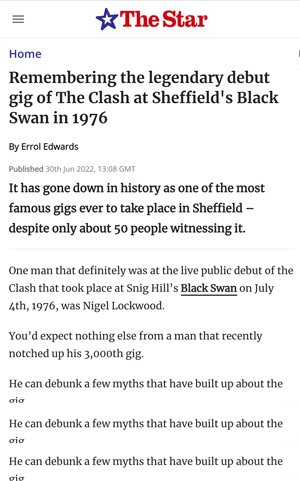 A wide ranging BBC Radio London radio interview with Paul and Mick in 2003. At 33mins they talk about the Black Swan gig.