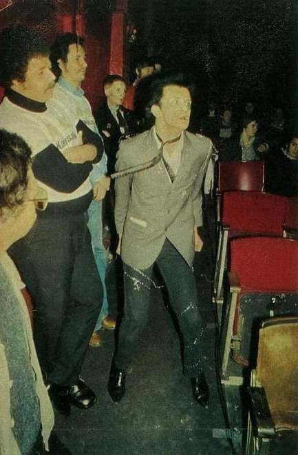It wasn't really their night though. The kids were all gobbing at the stage, devoid of menace, obviously believing that was the correct behaviour at a Grundy rock-gig. Mr Rotten’s elegant (honest) belted red jerkin and soft mulberry shirt were covered with saliva by the end. It’s up to you. If you wanna keep gobbin’, we won’t play.