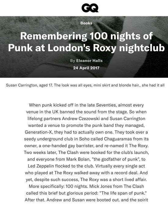 By the time the club opened for Chelsea gigs it had been renamed the Roxy, Chelsea had split with members Idol and James and Towe forming Generation X and it was they who played on closely followed by the Heartbreakers fresh off the aborted Anarchy Tour.