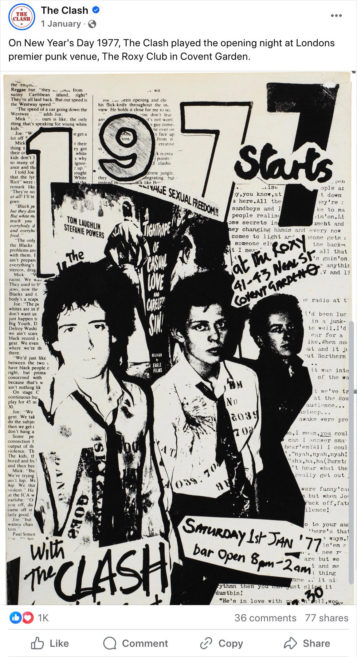1. NME: Unseen footage of The Clash's 1977 New Year's concert at the Roxy surfaces