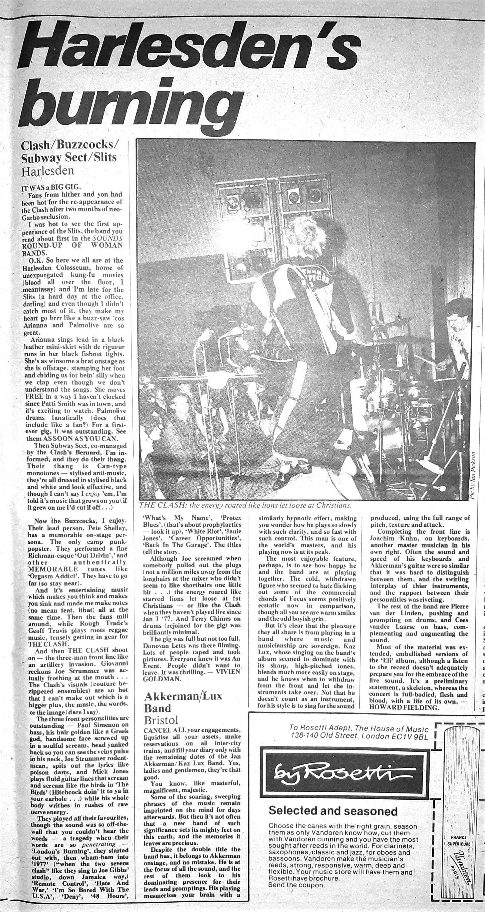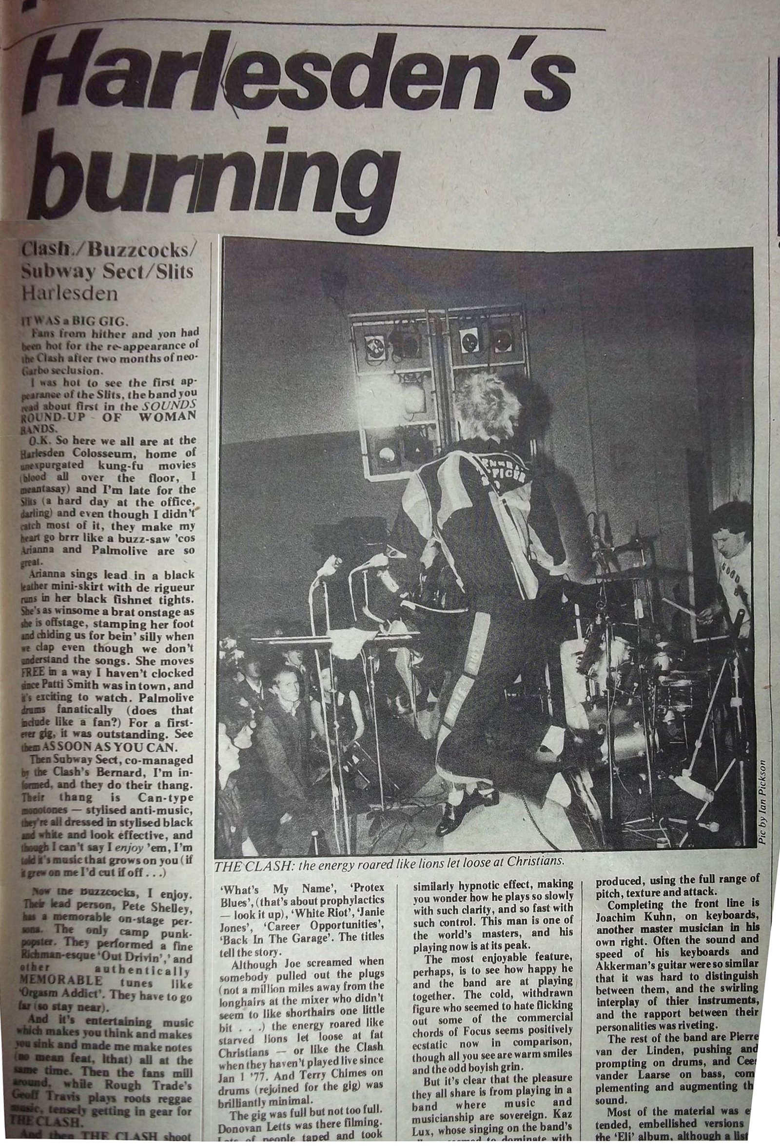 The Clash/The Buzzcocks/The Subway Sect/The Slits: Harlesden Colosseum, London ...