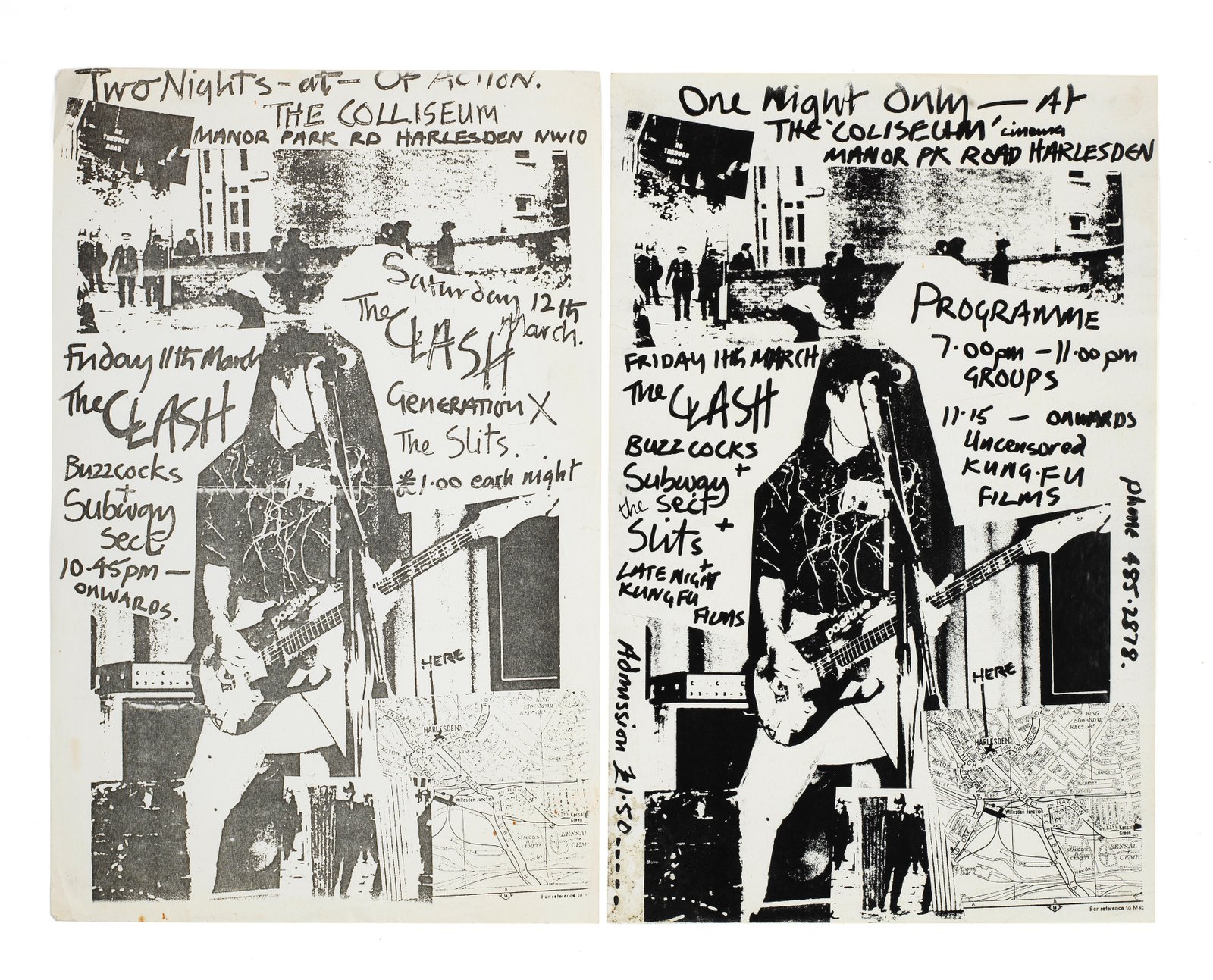 The Clash: A Concert Flyer, 'Two Nights...Of Action', at The Coliseum, Harlesden, London, 11th/12th March 1977 printed on paper 32.3 x 21cm (12 3/4 x 8 1/4in)