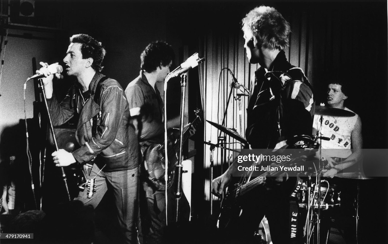 “There were some great announcements from Joe. Someone yelled something about the CBS contract. “Yeah! I’ve been to the South of France to buy heroin,” he announced. Another time “I’m Bruce Lee’s son,” he declared, before slamming the band into another devastating two-minute burnup. Joe had psyched himself up so much for the show that he'd been almost frothing at the mouth before he went on. Meanwhile, Paul’s bass playing had improved in leaps and bounds. This turned out to be Terry Chimes’ last gig with the band. To emphasise the point he had “Good- Bye” stencilled on his shirt.’