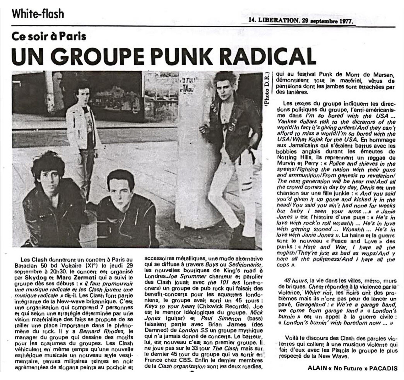 Mark - I'll tell you about one of the best gigs I've seen. In 1977, the Clash did a 3 date excursion in France prior to the White Riot tour. On the way to the first date, our car got hit by a twat French farmer. The car spun in the air and we landed upside down. The car was a write-off but miraculously no-one was injured. We were on our way to Rouen... so naturally enough the mini tour was nicknamed "the road to Rouen". At the venue, we were faced with a crowd of hairy-arsed Frenchmen just looking for trouble. The band when confronted with this potential explosion of violence, thought "fuck ‘em, we'll show ‘em" and proceeded to knock out a gig of pure excellence. At the end, they had turned round the audience. From anger to love in an hour. Absolutely amazing.