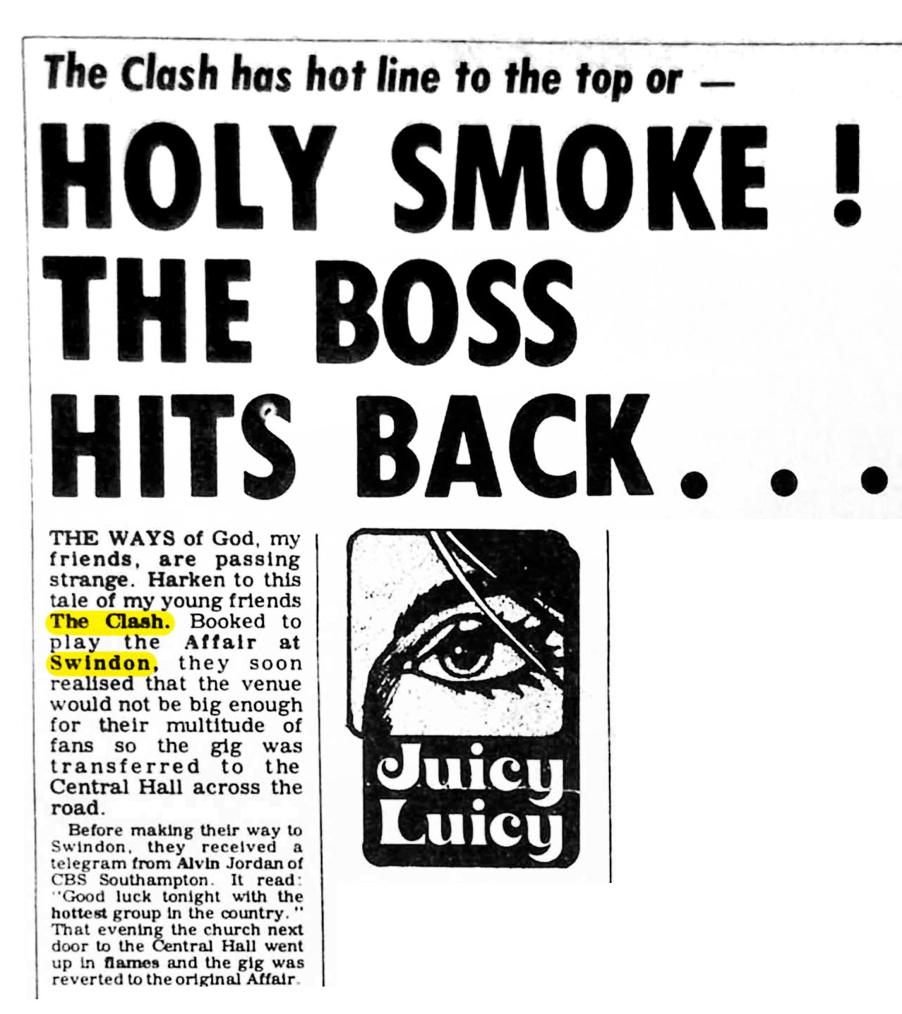 Two momentous events occurred in Swindon on the evening of Wednesday, May 4, 1977; the elegant Methodist Central Mission Hall was burnt down and The Clash came to town.