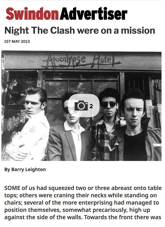 No bands that looked or played like The Clash had ever played in Swindon before.
