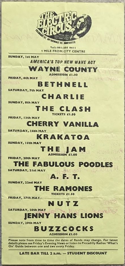 The Electric Circus was a regular feature on 'So It Goes', Tony Wilson's television program, showing live performances from a number of punk bands, giving them much-needed exposure.
