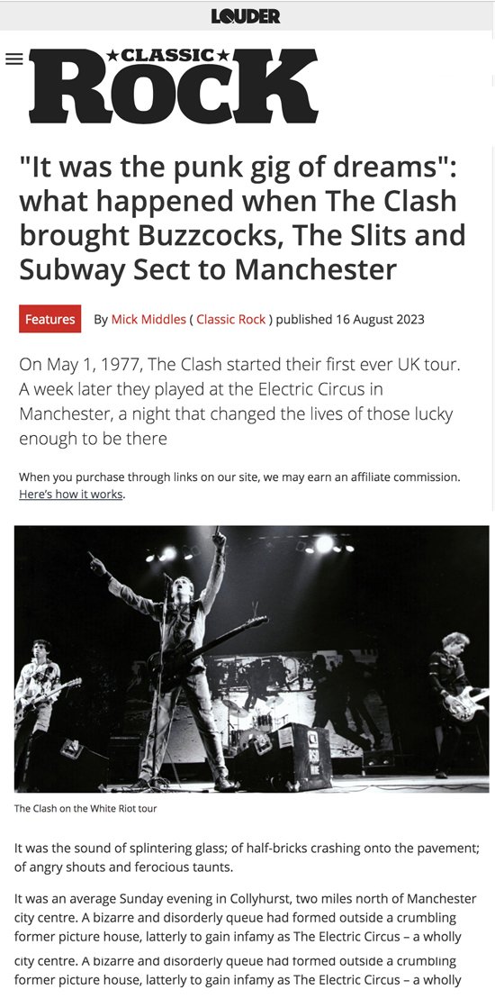 Mick Middles, The Clash, Buzzcocks, The Slits, Subway Sect By Mick Middles, Classic Rock - May 01, 2014, updated 16 August 2023.