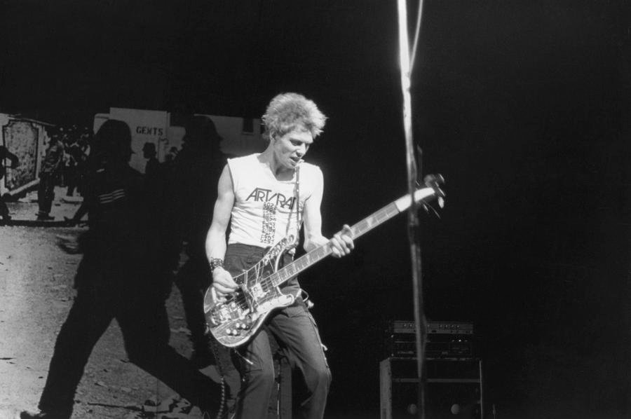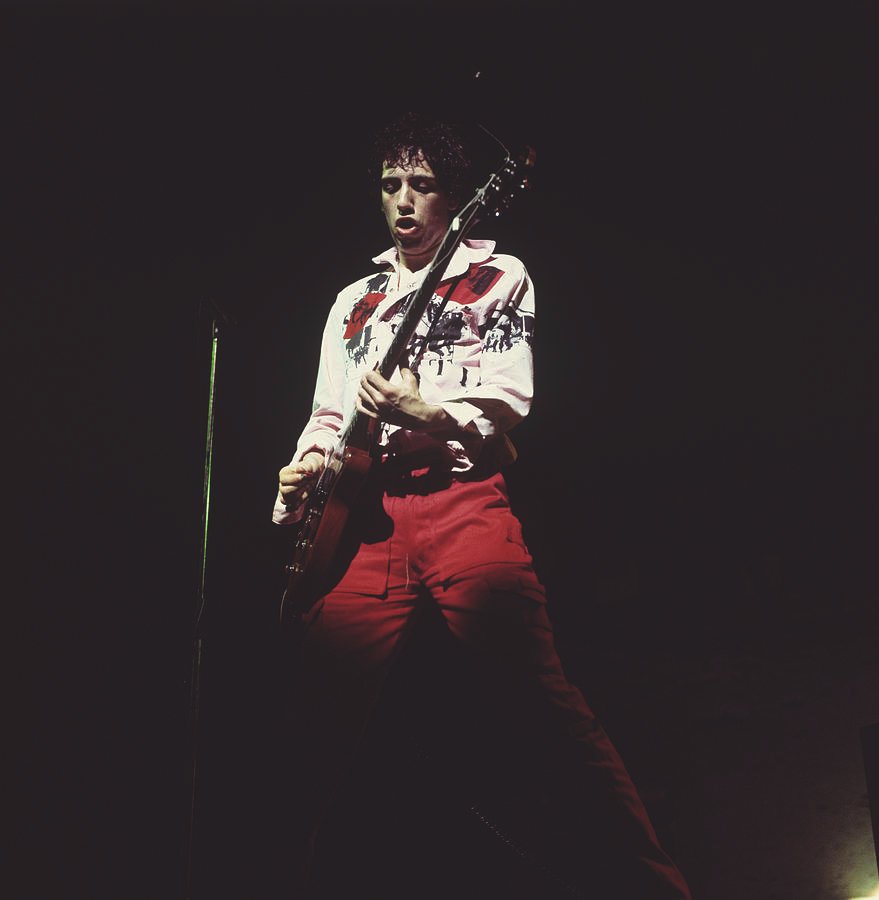 Paul Simonon during a concert at the Rainbow Theatre, May 1977.