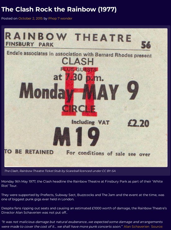 Paul Wright on Flikr. The Clash punk concert ticket The Rainbow, London 1977