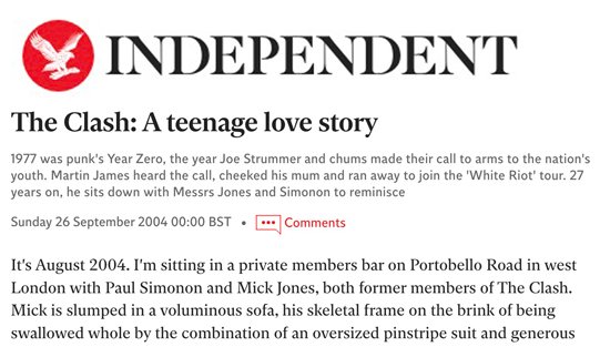 Loving the Clash Facebook page - The only Clash page that is totally dedicated to the last gang in town. Search Loving The Clash & enter search in the search box. Place, venue, etc