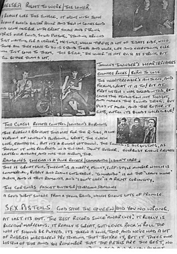 Footnotes: The back cover advert for 'Seditionaries' was commissioned by Vivienne Westwood. Mark does not recall the shop ever doing any other press, fanzine or otherwise, so he took this commission as quite an honour. The Clash live review at The Rainbow is by early Punk fan Gary Kemp, later of Spandau Ballet.