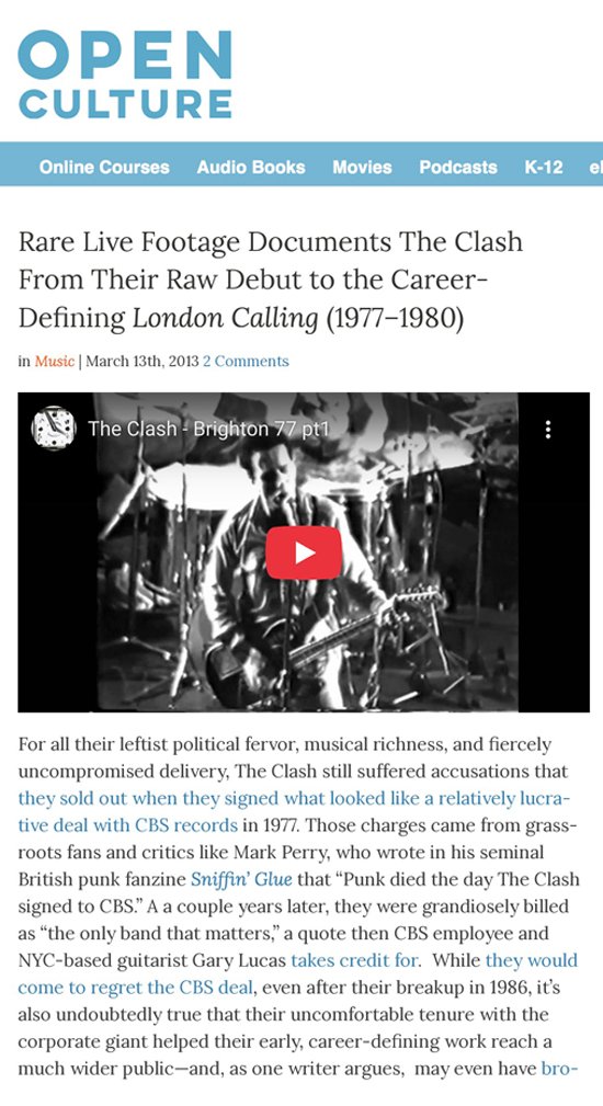 3. A video on YouTube titled "The Clash - Brighton 77 pt1" contains footage of the band's performance at Sussex University during the White Riot tour. Watch the video here.
