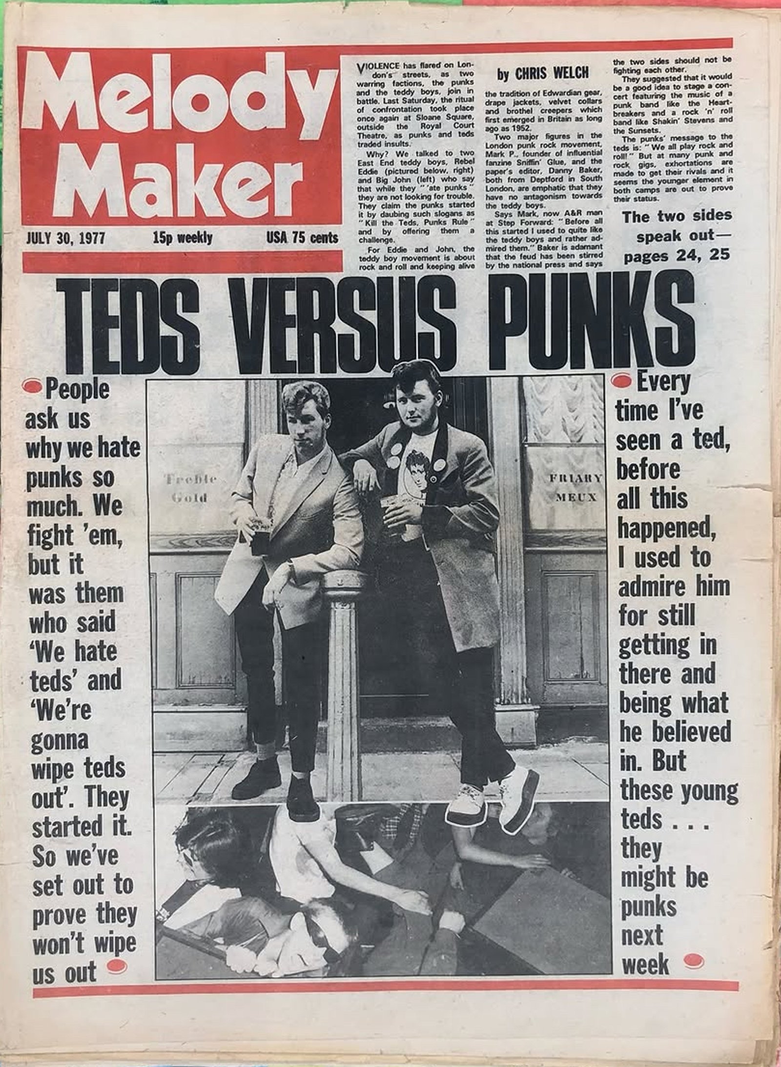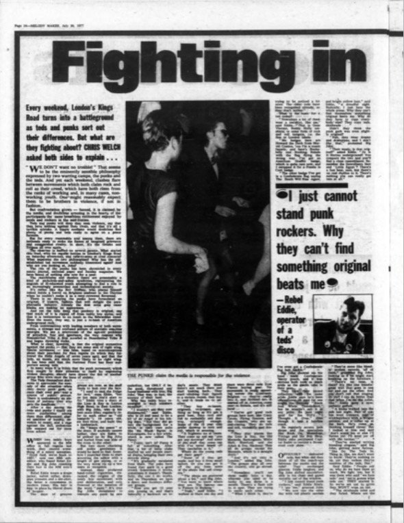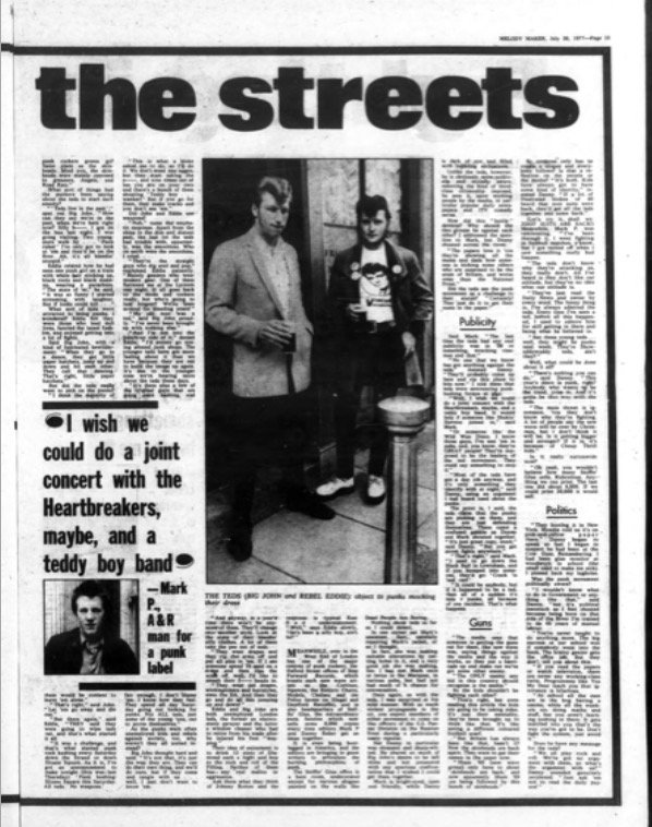 He told MM : “The dates they wanted were already booked. I would not comment on any question about insurance.” Asked if Strutworth had changed their policy toward’s punk bands since the Clash concert, he said: “We have never had any definite policy on punk so there cannot be any change. I really do not wish to make an issue out of this, and I really do not want to say anything that will go into a newspaper about this subject.”