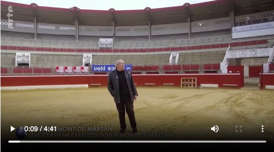 00:27:13 - 00:27:42 The sun is crushing, it is the beginning of August in the Landes. Inside the arenas, excitement rises. So, before opening the gates, the organisers spread kilos of baguettes with pâté and rillettes and roll out beer barrels. Punk makes you hungry and thirsty. In the stands, the musicians arrive a little early in a big yellow bus, empty beers and enjoy the sun. Then they are joined by the crowd of enthusiasts and the curious on the ring of the Plumaзon Arenas.