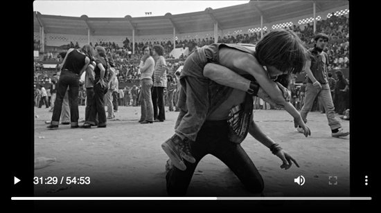festival cette fois ils voient plus bruyants plus inquiétant pour les autorités locales ce sera un festival de panique [Applaudissements] [Musique] ça fait office de bombes pour une bonne raison il ne s'était jamais rien passé de tel dans une ville de province et comme à mont de marsan est une ville militaire surtout à l'époque j'avais les parachutistes la base aérienne mois d'août où passait bien que d'habitude c'est le calme plat les arènes sont prises d'assaut par une faune plus habitué aux stades aux arrières salles