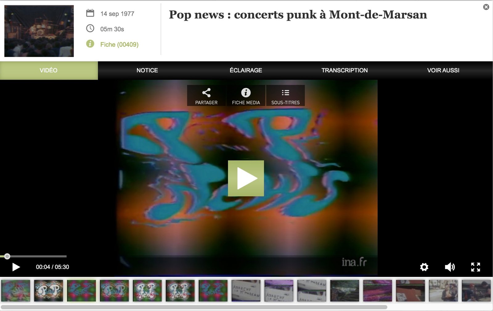 00:19:14 - 00:19:41 But this strategy is not enough to silence the Pistols. Global success follows and the punk movement explodes. It becomes a real phenomenon that interests sociologists and philosophers. A certain Jacques Attali, an expert on youth culture, speaks about it on television on the programme Hebdo Chansons, Hebdo Musique in 1977 on France 2. "There exist ways of making music, of inventing it, of creating it…"