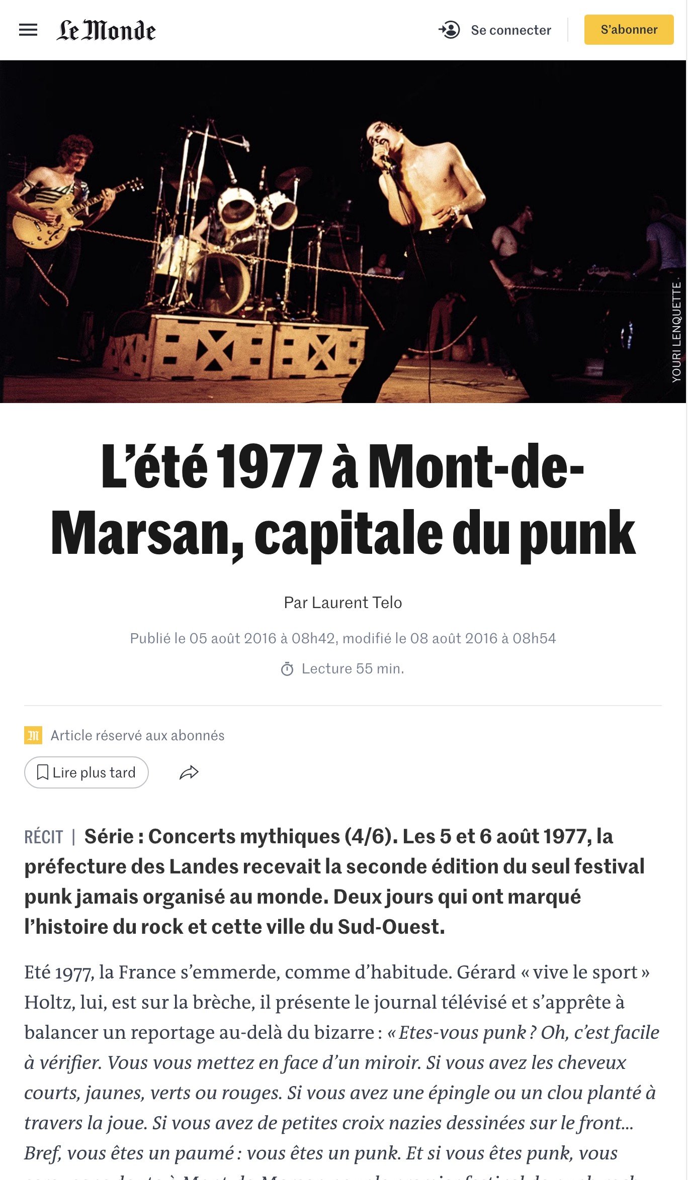 Il y a près de 50 ans, des centaines de punks faisaient de Mont-de-Marsan leur lieu de ralliement - Edition du soir Ouest-France - 11/07/2024