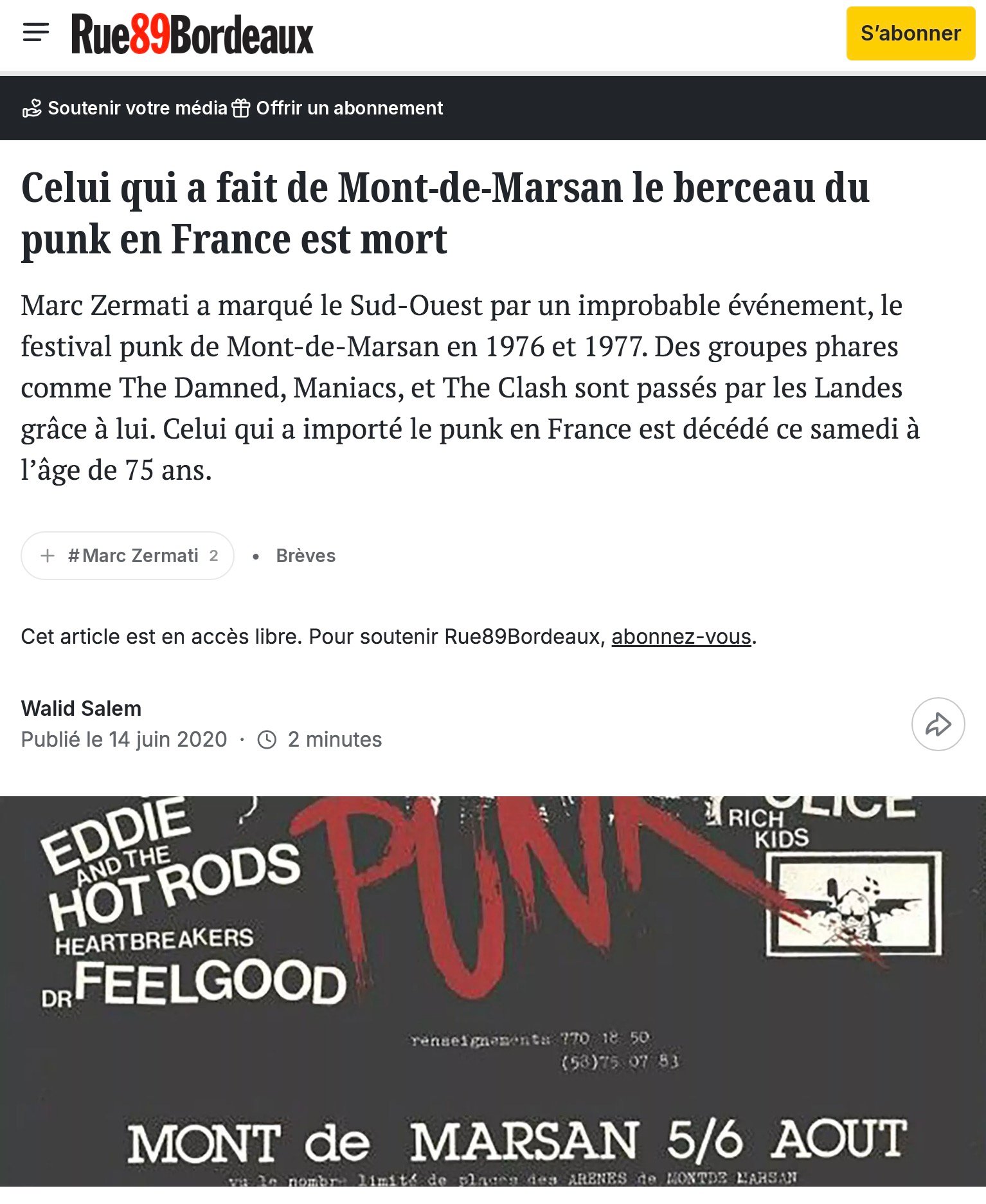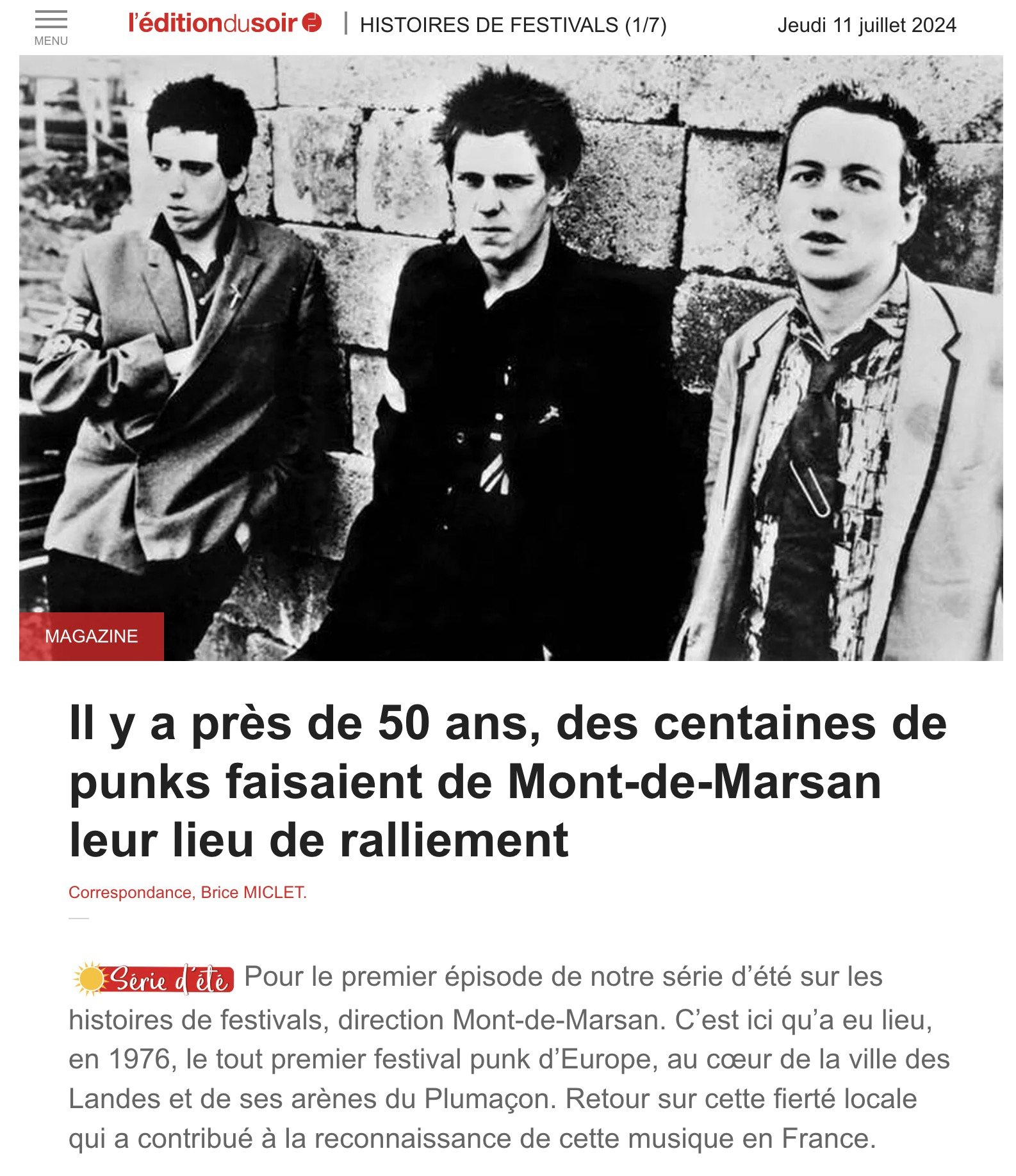 Nearly 50 years ago, hundreds of punks made Mont-de-Marsan their rallying point - Evening Edition Ouest-France - 11/07/2024