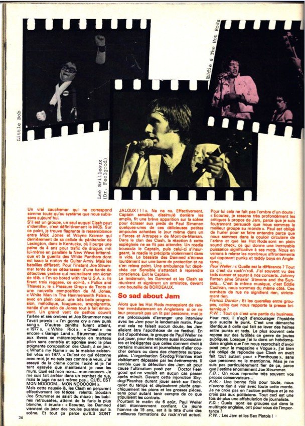 00:26:45 - 00:27:13 It is perhaps for the best; the Pistols are among the most uncontrollable. And in the end, Marc Zermatti does rather well anyway. He has more than one trick up his sleeve. And above all, The Clash agree to come. So, on paper, the bill is impressive. On the English side: The Clash, The Police, The Jam, The Damned - excuse the understatement. On the French side: Stinky Toys, Bijou, Dr. Feelgood - enough to draw a crowd.