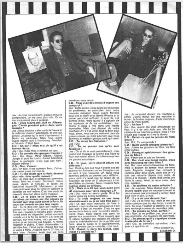 Paris… is beginning to sizzle… Joe jokes. Paris is Singing! screams! Final encore of London’s Burning ! With Joe citing the names of Parisian bands that matter right now: Asphalt Jungle ! The Stinky Toys ! etc. Yes, it’s 1977, and Paris is singing punk!
