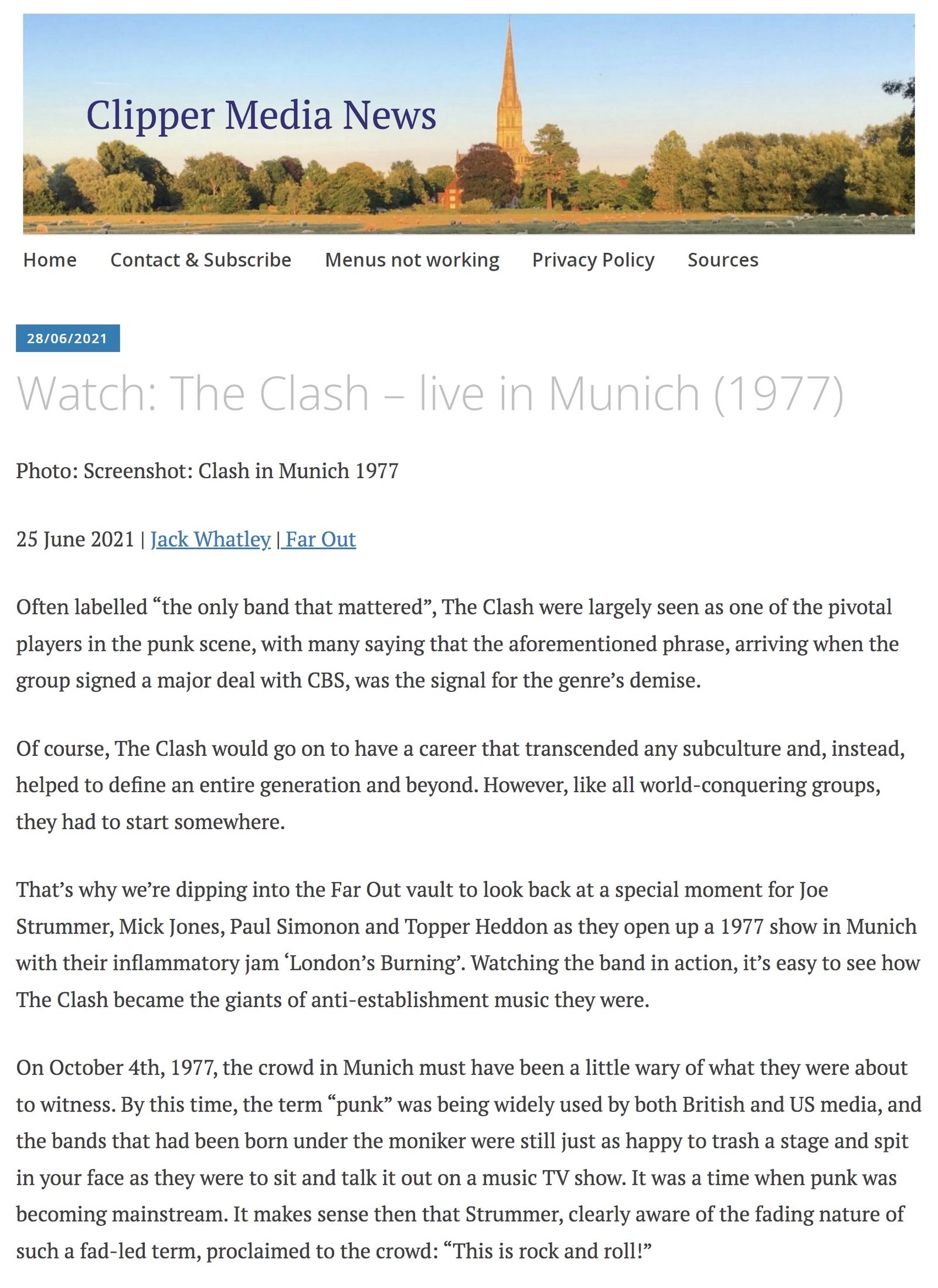 Far Out / Clipper Media Author/Editor : Jack Whatley , June 25, 2021 , Page N/A, Watch: The Clash – live in Munich (1977) 512 words