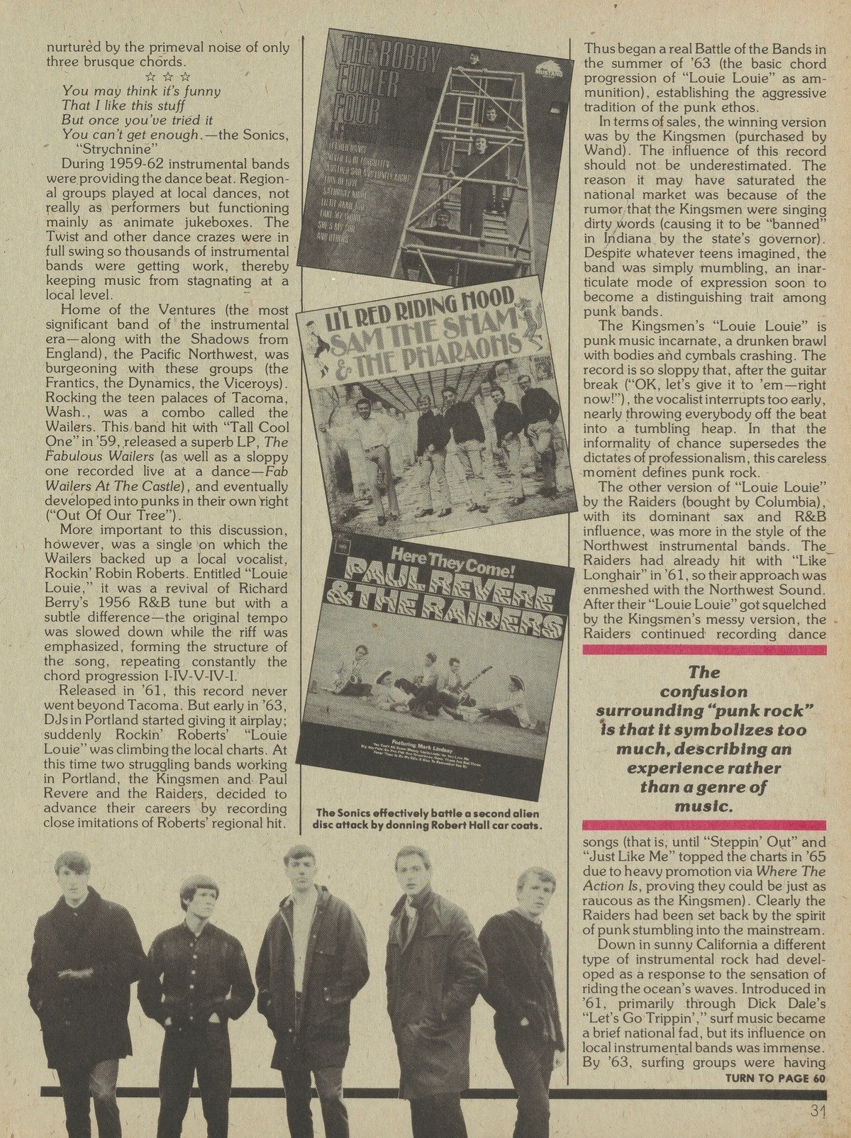 Jones: We got through it all right, so the Regaray had to retaliate by putting a bomb threat in one of our gigs. We were all standing outside waiting for the building to blow up. We were in this. town, and they had never had a bomb scare since the war.