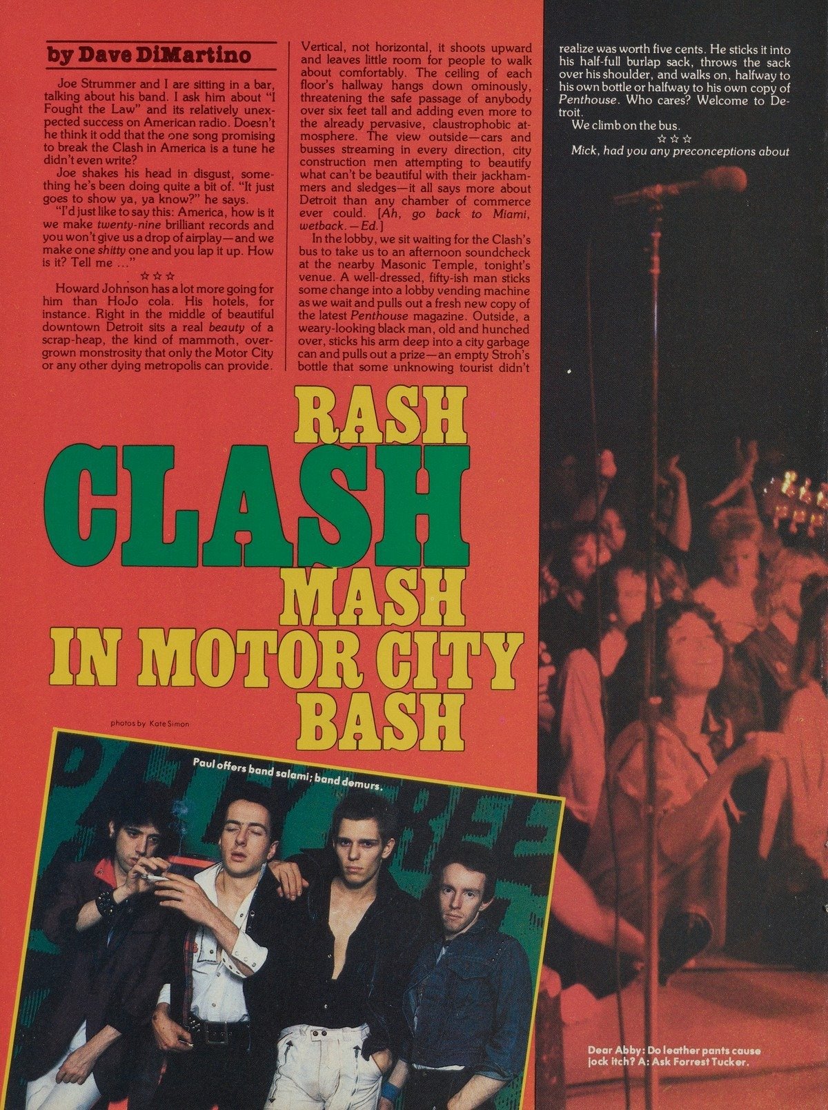 We've been hearing about a few Clash capers in the States where the band are currently engaged on a gruelling US tour.