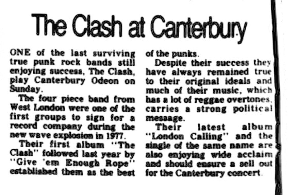 Paul Higgins I went to the Canterbury gig on the 6 th Jan, I jumped on stage and started singing londons burning with mick Jones, after the gig, we went backstage and met all the band, the clash loved their fans, top blokes,especially Joe and mick.