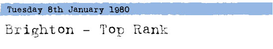 David: The Clash also played City Of The Dead at the Top Rank in Brighton the night that Pete Townshend joined them on stage. Can't believe a recording hasn't circulated, it was recorded by two guys situated on the balcony who had two professional looking microphones. Much better than the previous night when Joe lost his temper due to spitting and cut the set short.