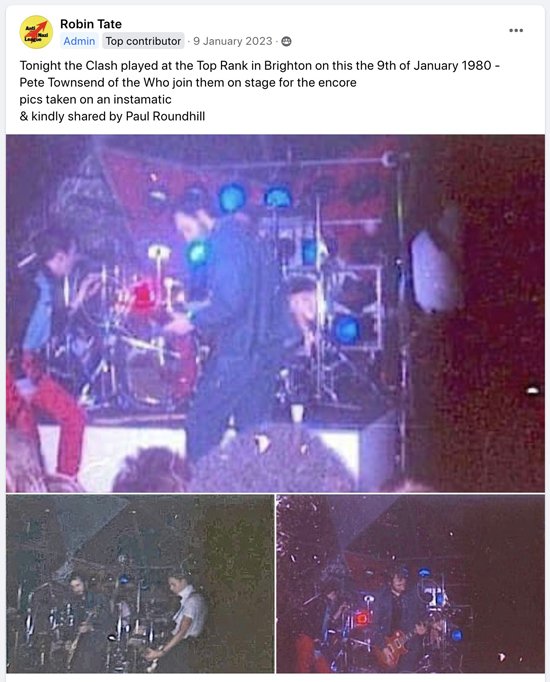 Glenn Girling -- I was at that gig , and chatted to Pete at the bar! He told me the Clash were right up his street ! Funny thing was I started the conversation with, don’t I know you !! I was 17 at the time and liked the Who , nowhere near as much as I liked the Clash ! Still the only band that matters to me . -- facebook