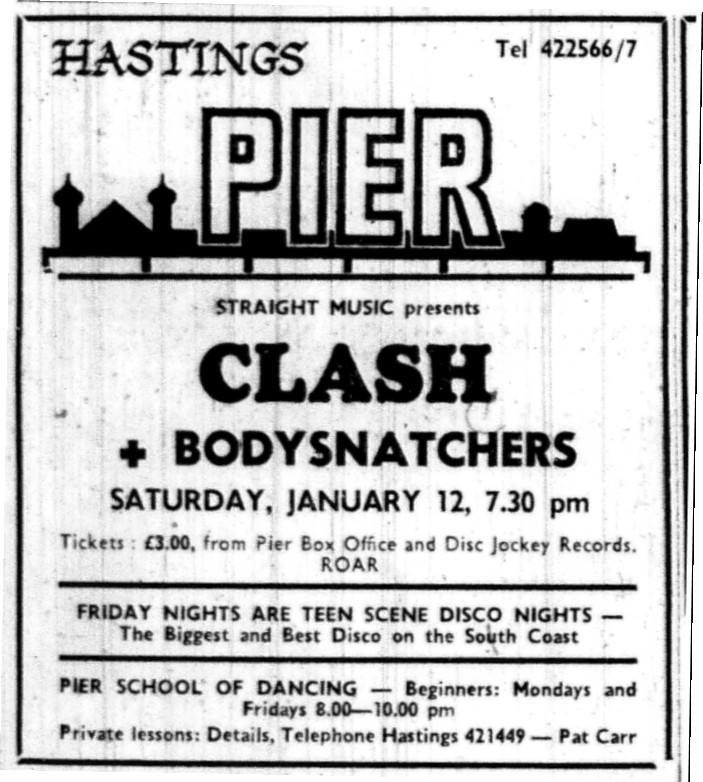 The Clash photo Hastings Pier 12th January 1980 by Mike Twine. Mike Twine says... Hi, I thought that this photo might be of interest to anyone who went to this Clash gig on Hastings Pier in January 1980.