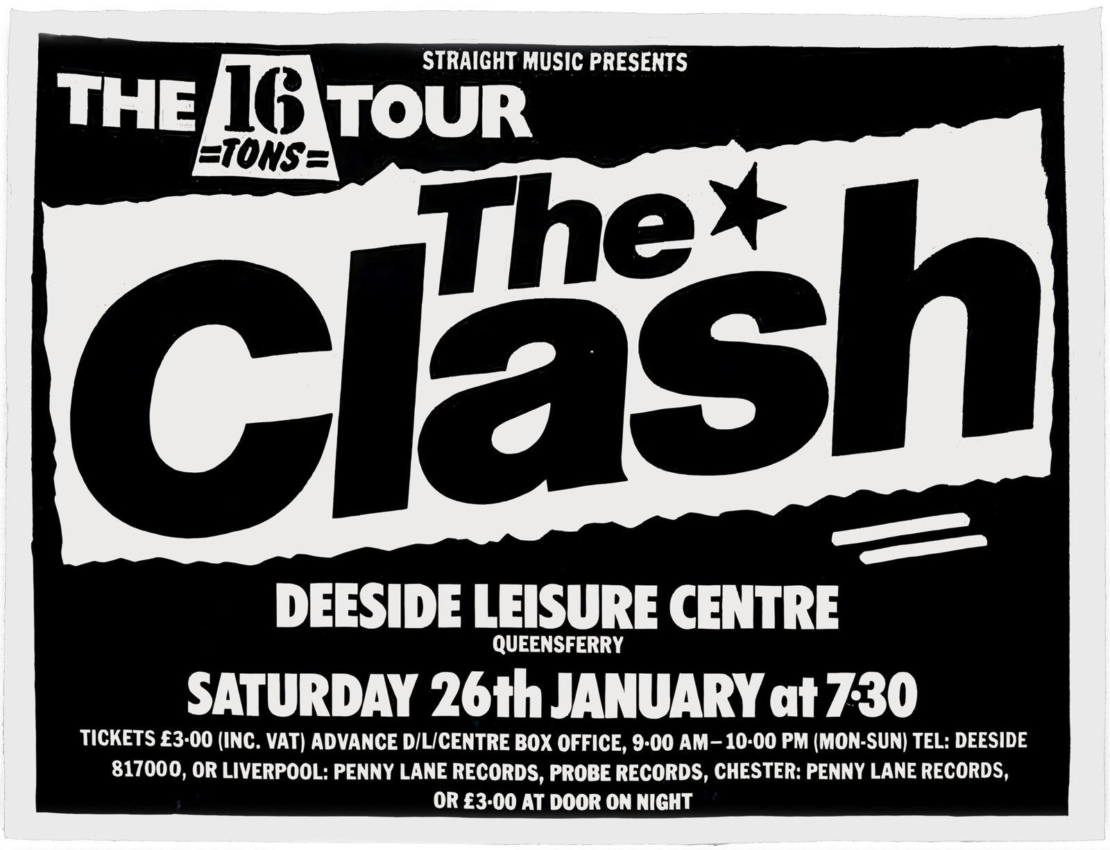 I had only just turned thirteen when this happened, my Dad was a photographer for the local press & got me 2 press pass tickets for The Clash live at Deeside Leisure Centre, who were on their 16 Tons Tour (they always named their tours). Me and childhood sweetheart Lynda Jones sat on the balcony with the other dignitaries as thousands of punks swayed on the covered ice rink below us. The Clash were a big band by 1980 and rumour has it they had played here in 1978 with Suicide in support, although no one can confirm if they actually did.