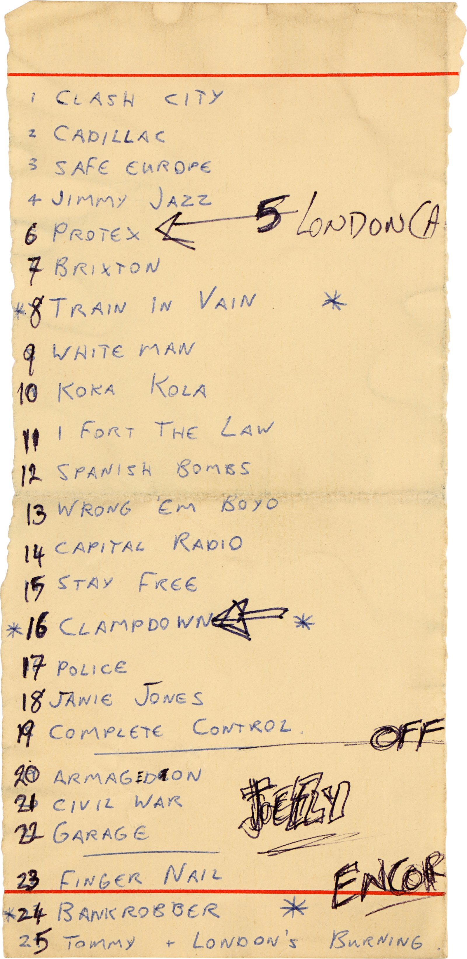 THE CLASH, 494. Joe Strummer Handwritten Set List