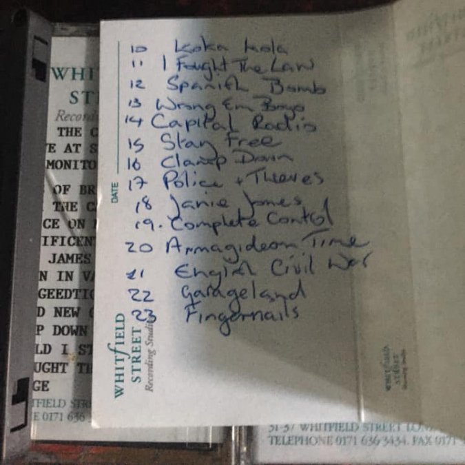 It runs straight into Police & Thieves with Topper beating out a steady intro and Joe shouting improvs over the top with heavy echo, before the song kicks in. It another highlight. The energy levels build further as its straight into Janie Jones and a great Complete Control bringing the set to a climax. The tapers sing along and only Mickey's organ sounds out of place; his organ complemented most Clash songs but not the short fast 77 ones.