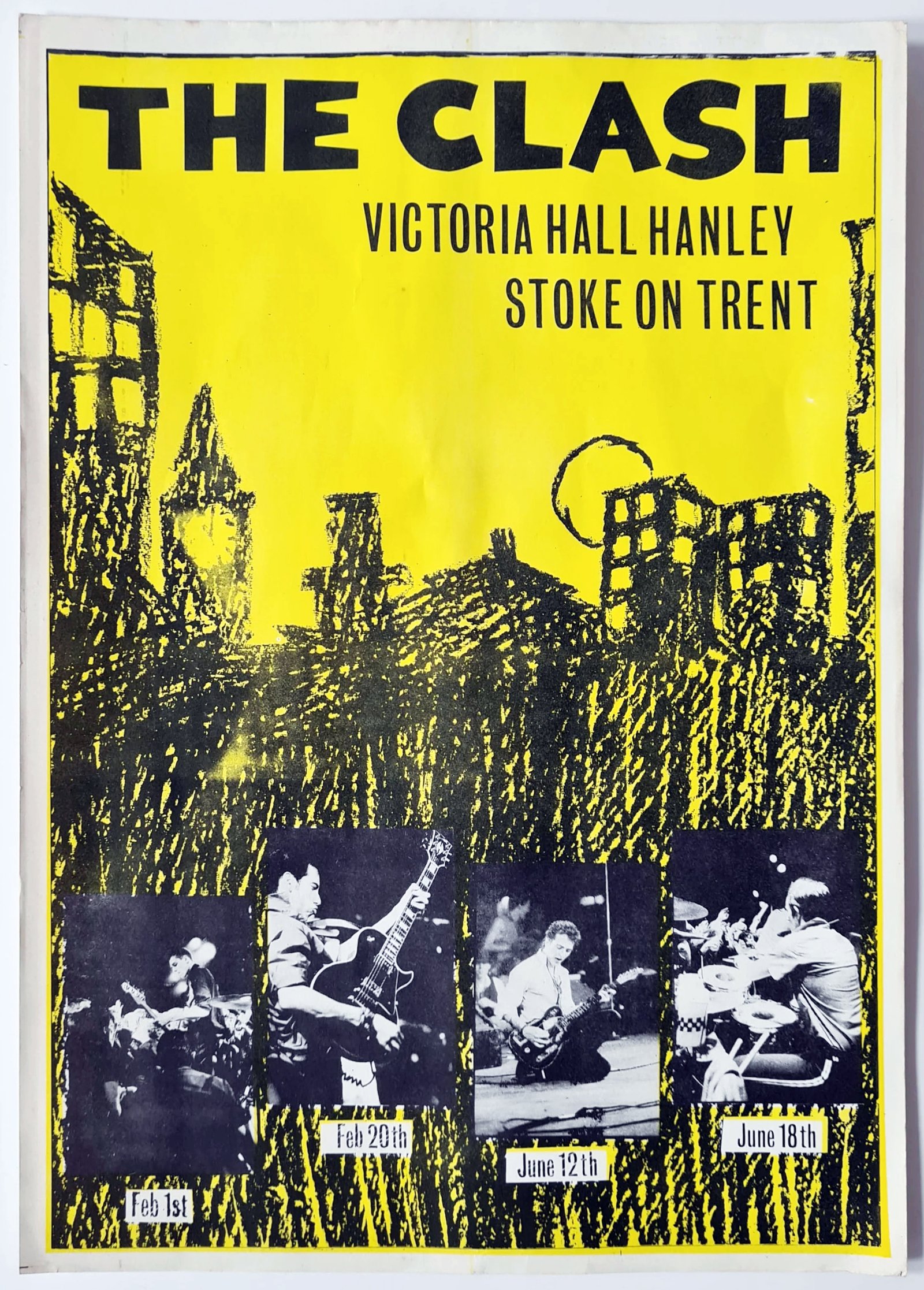 This incredible flyer was for The Clash's 1980 gig at Victoria Hall, Hanley, Stoke on Trent, featuring many delayed gigs throughout the months of February and June, these flyers were given out at the final gig that went ahead, along with a fanzine.