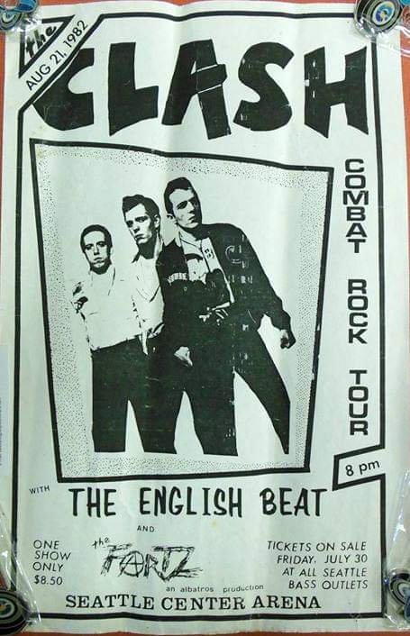 Hey there, Fantastic site. I just wanted to let you know that the Seattle '82 date (August 21) was a hoax perpetuated by me and two friends who selfishly hoped it might bring the Clash to town since they were skipping Seattle. We knew the US tour was on and we knew the Beat was opening, so we added local Seattle punks The Fartz and printed up the signs ourselves and put them up all over town late one night. The poster was reprinted in Art Chantry's book on Seattle poster art called Instant Litter. I'm sure the scan you have came from that. So there was never a show, never a Seattle date booked to cancel. Just three kids in nearby Tacoma who hoped to see their heroes. We finally did when they came to town to open for the Who later that year. Erik Flannigan