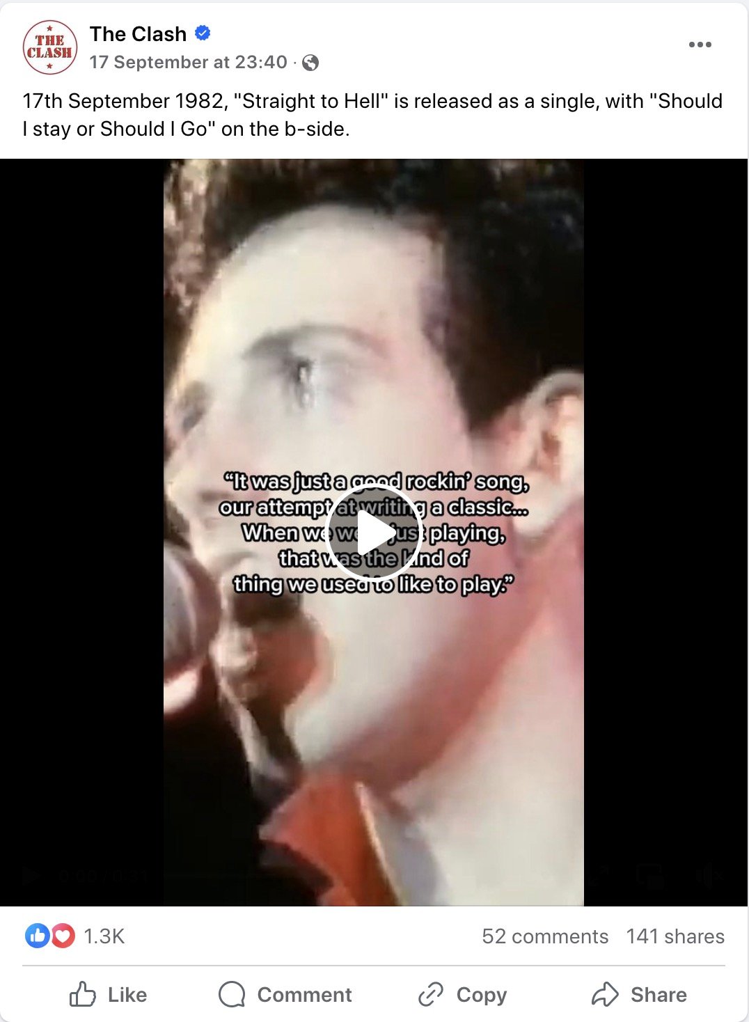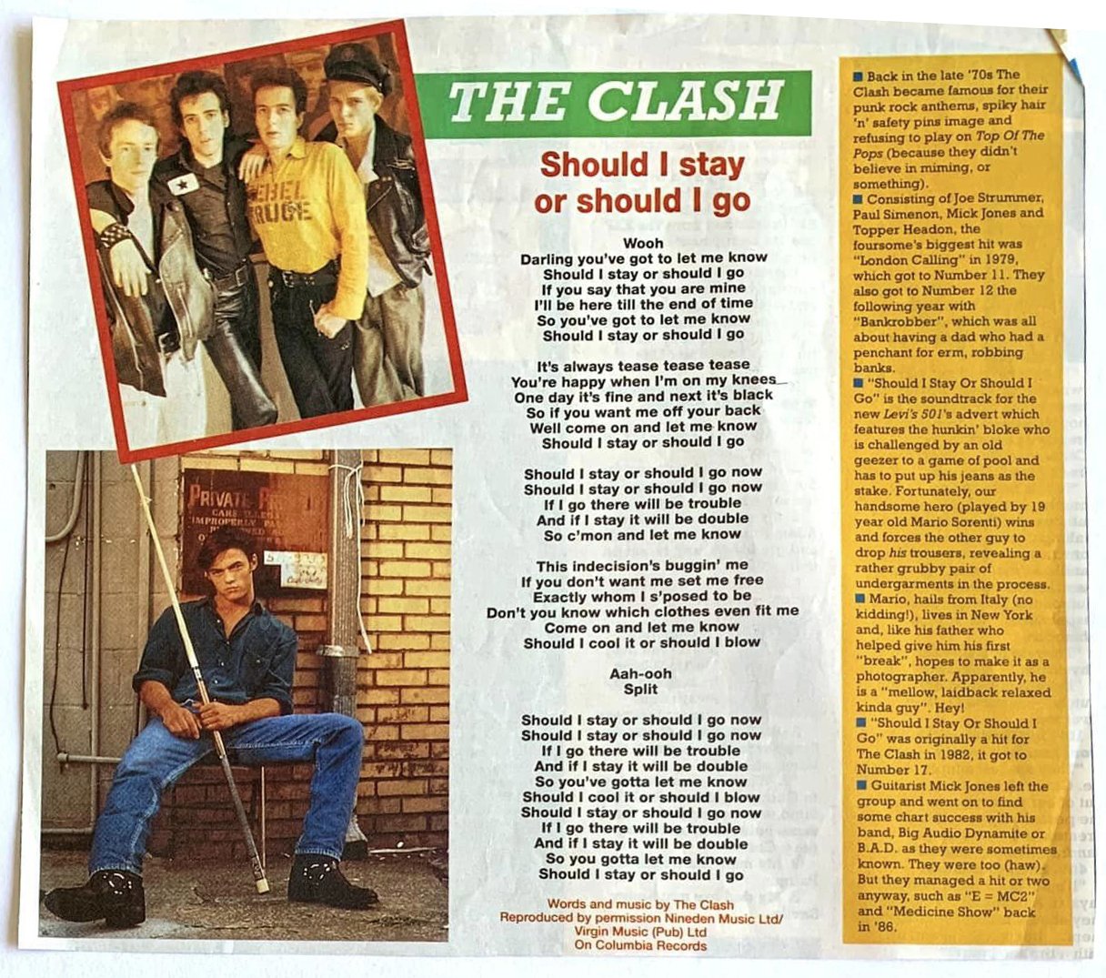 "Should I Stay or Should I Go" peaked at number 17 in England and when it was re-released ten years later, in 1991, it reached number 1. The Clash Official | Facebook