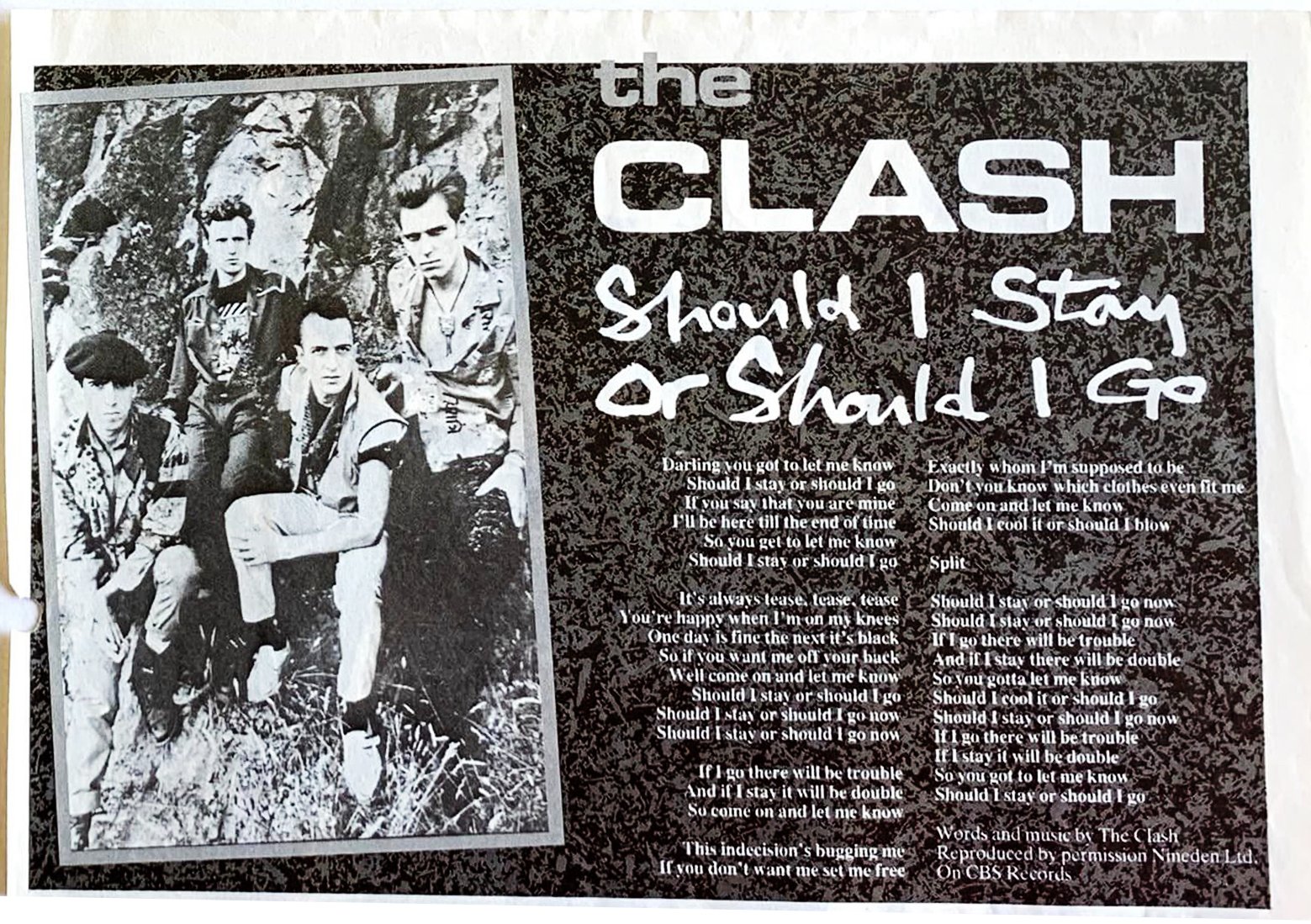 "Should I Stay Or Should I Go" is the flagship of the Clash and the last great collaboration between Joe Strummer and Mick Jones. A song that is in the musical imagination of the 80s and turned the band into an icon of Punk-rock.