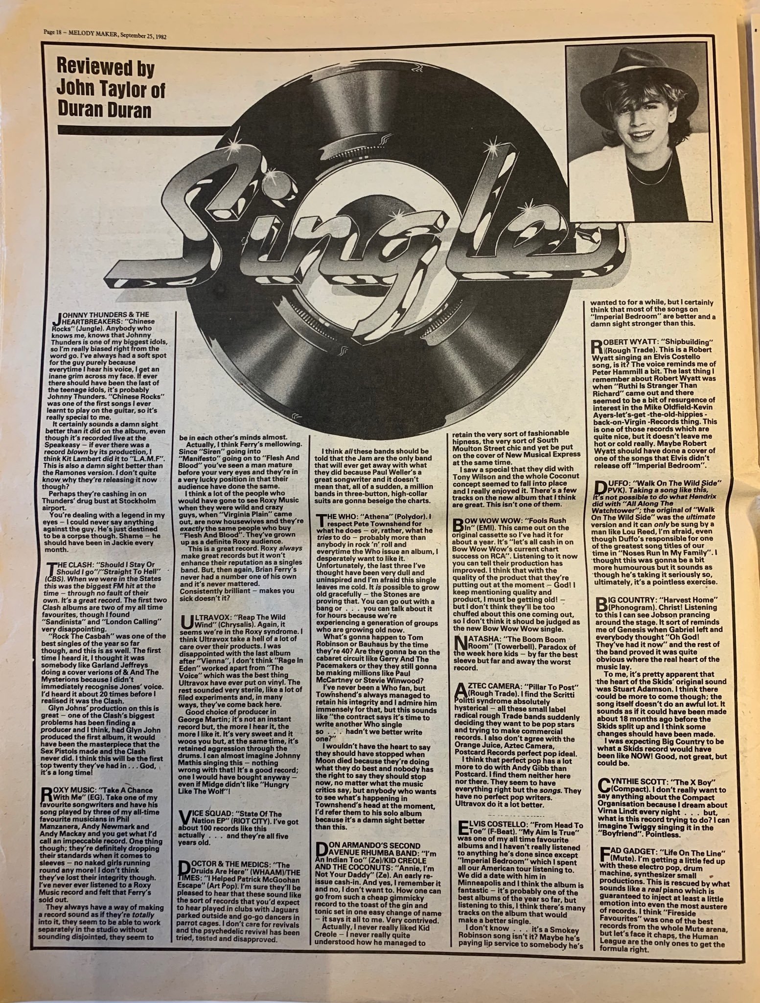 82 09 25 Melody Maker SISOSIG John Taylor Duran Duran