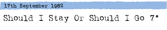 17th September 1982, "Straight to Hell" is released as a single, with "Should I stay or Should I Go" on the b-side