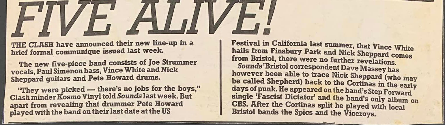 Great read over on SSS site. "Then a shock. Mick Jones rings to say that he’s been sacked from The Clash. Me, Martin and Neal stare at each other in disbelief. How can they sack the man who started it all?