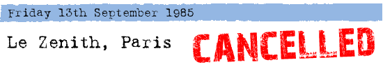 Autumn 1985 European Tour - Cancelled