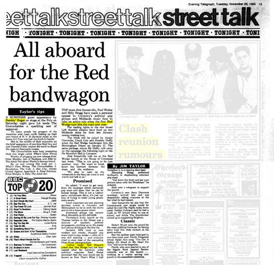 We're doing well, we've got a single out, but I got a feeling that we were invisible, we were working very hard, loading the van, driving up north, unloading, playing the gig, loading it up again, driving down again, unloading again 'cos we didn't want to get the gear nicked.