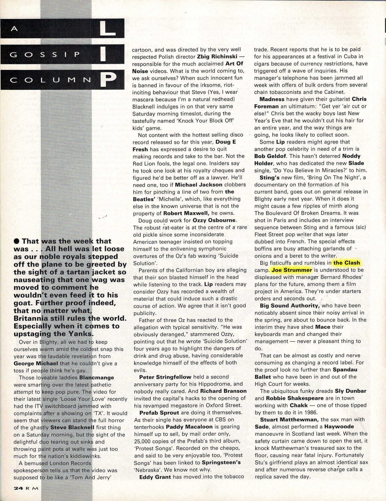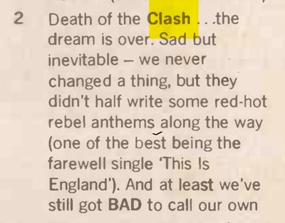 To me, a really important thing was from seeing you, I had a particular image of The Clash, then you had that really good piece in the NME, with Tony Parsons - The Circle Line interview - that seemed to change it into something a lot more sociological, more to do with high-rise and tower blocks.
